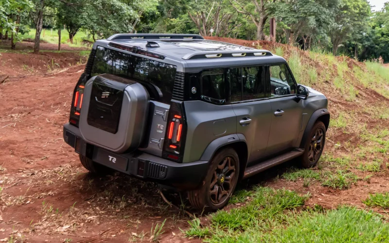 Assim como o T1, o T2 aposta no visual “quadradão” e na motorização híbrida plug-in, posicionando-se como uma opção de luxo com vocação para o fora de estrada. Entretanto, neste primeiro momento, o SUV estreia apenas com tração 4×2. Segundo a marca, a aguardada versão 4×4 chega “em breve”.